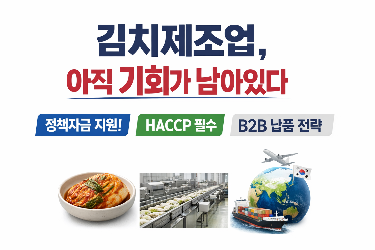 김치제조업은 ‘전통식품’이 아닌 ‘정책자금·수출·B2B가 결합된 안정적 식품제조업’이며, HACCP 기반 구조를 갖추면 장기적으로 매우 유망한 산업입니다.