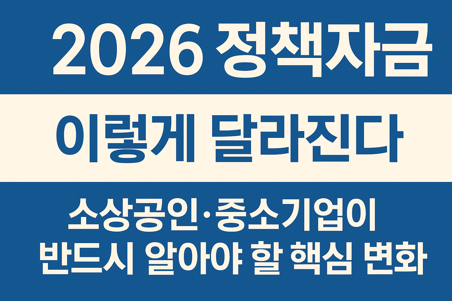 2026년 정책자금의 핵심 방향을 정리했습니다. 소상공인·중소기업·창업기업이 어떤 기준으로 자금을 받을 수 있는지, 올해 정부 지원의 흐름과 전략 분석했습니다.